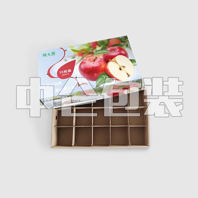 此包裝盒又稱為上下蓋盒,多用于9個(gè)、12個(gè)、15個(gè)裝,在10斤以上的蘋果,成本上會(huì)略高一些,材料需要選擇特硬加強(qiáng)的瓦楞紙。